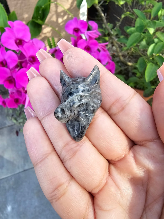 Sold outMini Yooperlite Wolf Head Carving