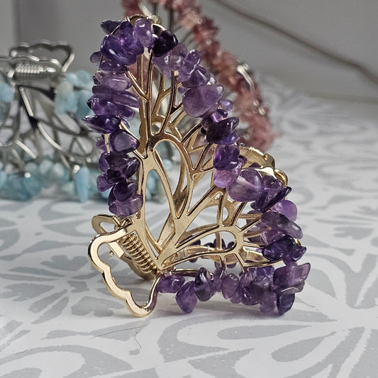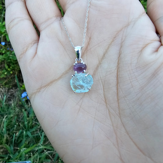 Amethyst, Pink Tourmaline, Selenite Pendant, "Healing"