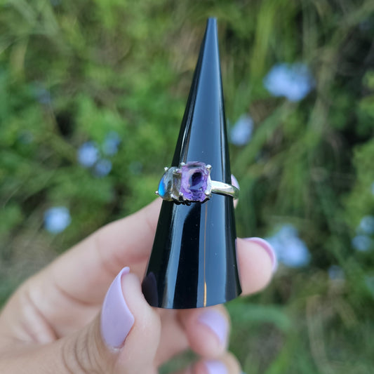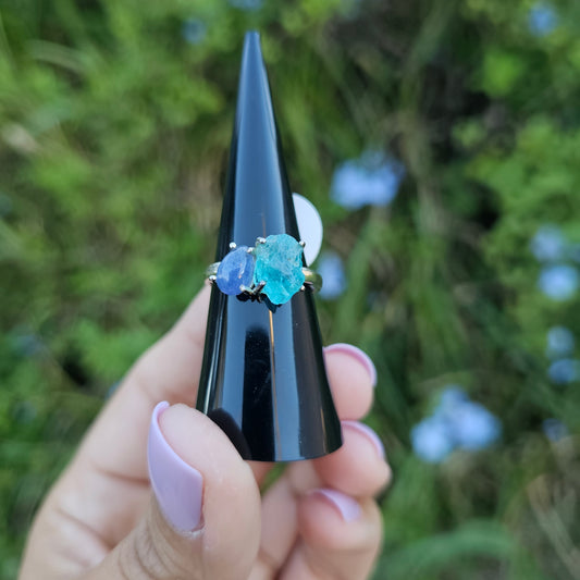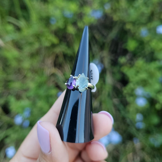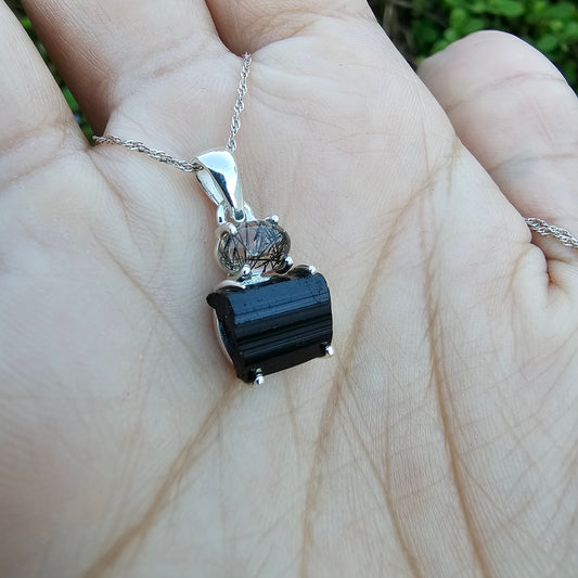 Black Tourmaline & Tourmalated Quartz Sterling Silver Ring