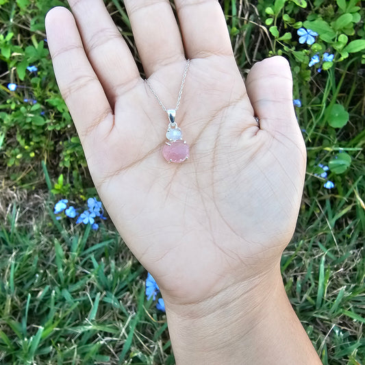 Rose Quartz with Rainbow Moonstone Pendant